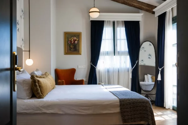 המלון ממוקם בקצה המדרחוב, קרוב ליקבים, גלריות ובתי קפה, אבל מרגע שנכנסים פנימה – הכל נעצר. רק 11 חדרים, כל אחד עם עיצוב כפרי רך, מיטת קינג סייז, מכונת קפה ופינת ישיבה נעימה. חלק מהחדרים נפתחים ישירות לפטיו, מושלם לבוקר רגוע עם כוס קפה מול השמש.